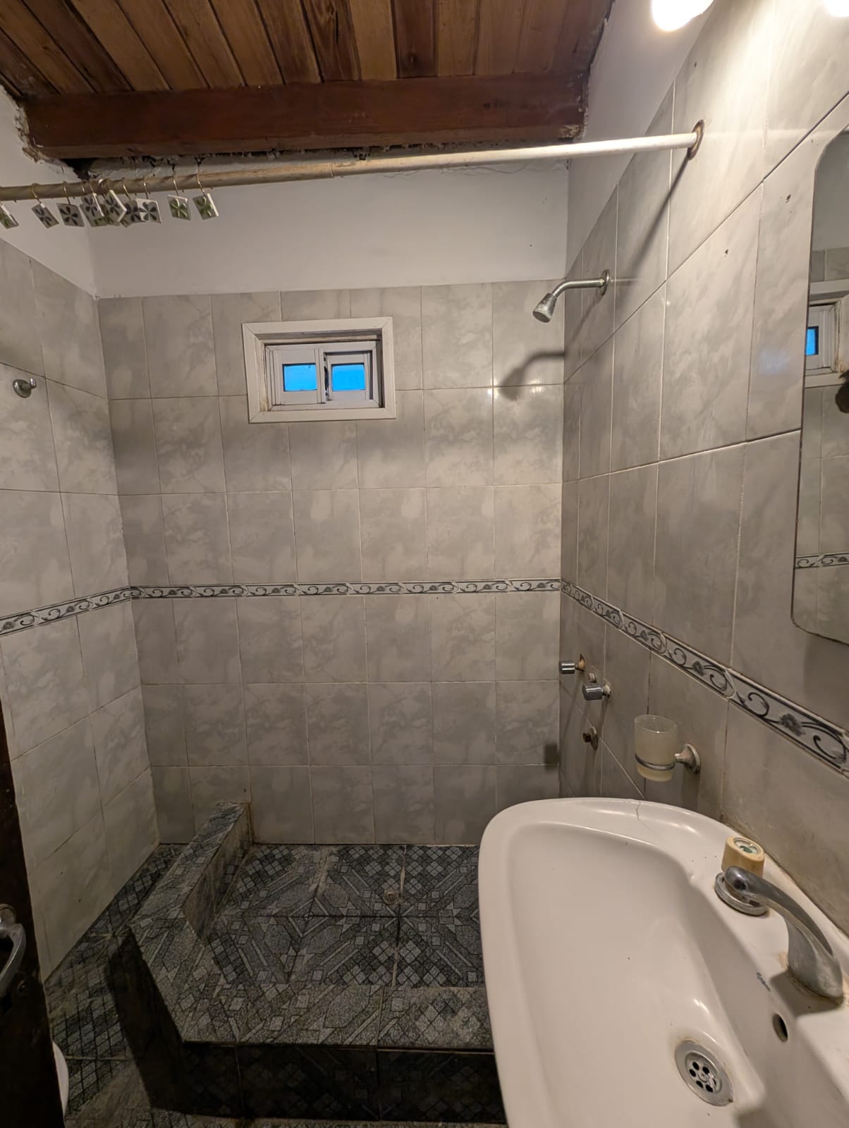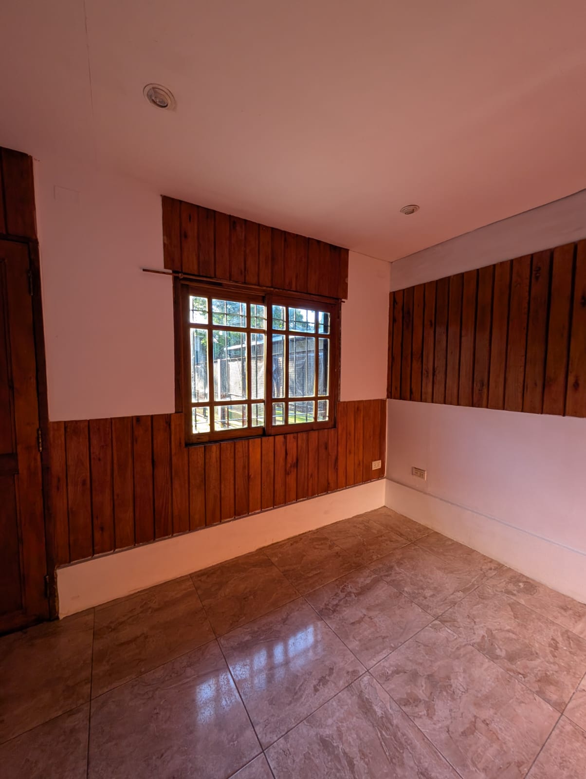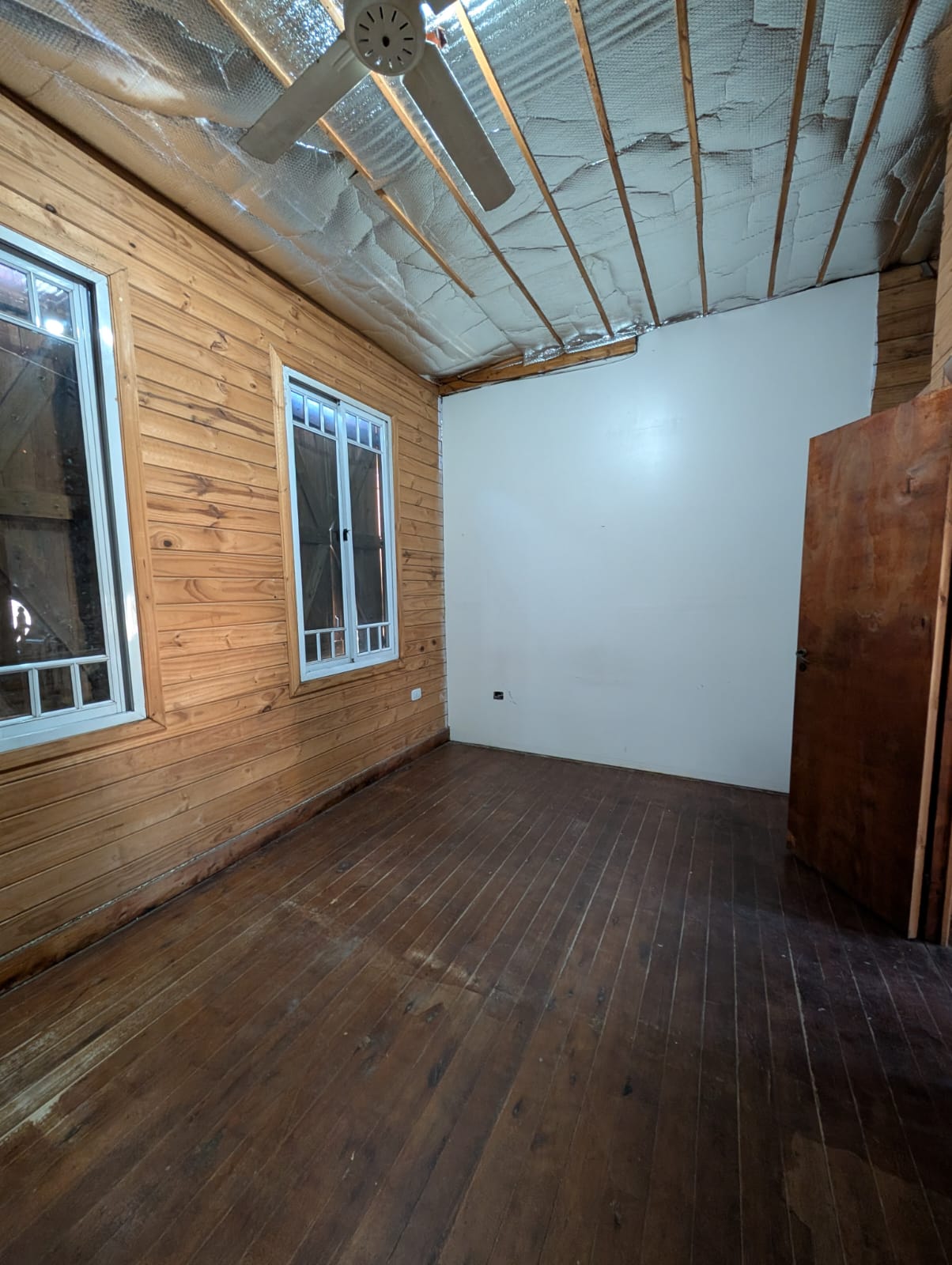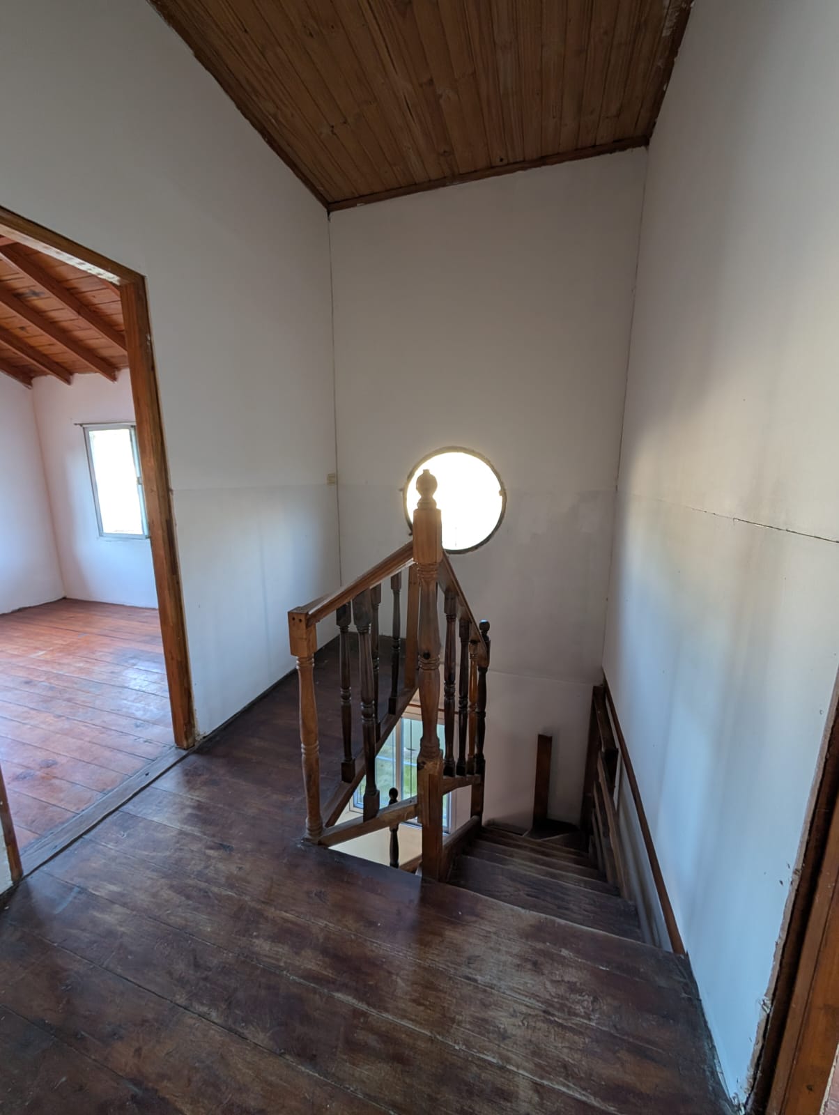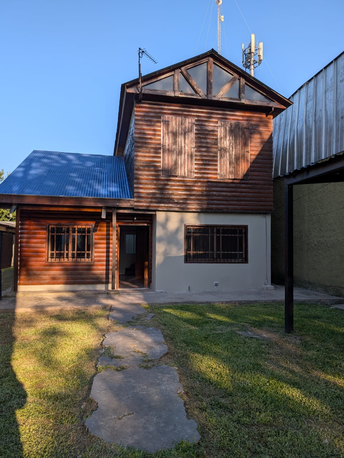 vivienda tipo cabaña en dos plantas, cocina con sala de estar/comedor, pasa platos, baño instalado